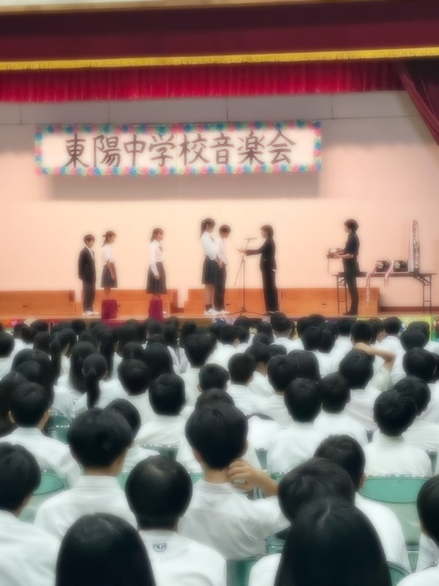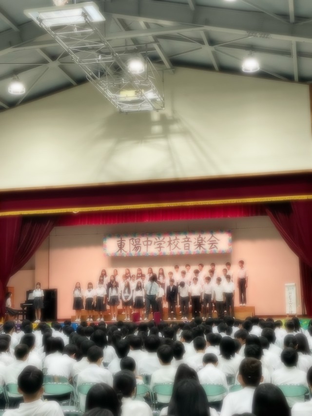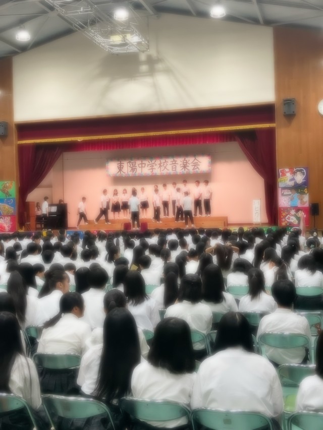 本日、校内音楽会がありました。生徒たちは緊張した顔で舞台に上がり、精一杯歌った後は、充実感に溢れた顔をしていました。どのクラスも声と気持ちをひとつにして、素晴らしい合唱でした。3年生の迫力のある合唱は、後輩たちの記憶に残りました。「来年がんばろう」という声が、すでに2年生から聞こえてきました。来年も素晴らしい音楽会にしましょう。