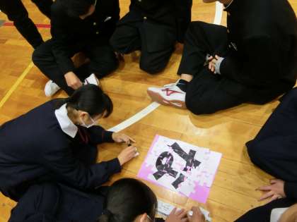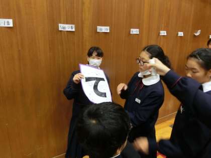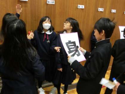 完成した文字は壁に貼ります。グループによって貼る場所が決まっていますので、どうやら全部そろうと文章になるようです。な・身・て・・・
