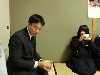 東陽中学校の職員が順次訪れて美味しいお茶をいただきました。
