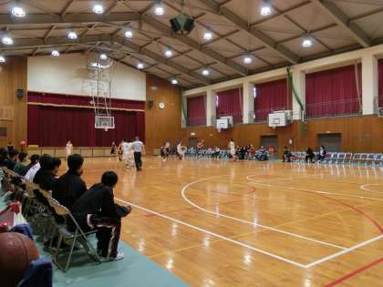 12月23日 冬休みの活動風景です。三市一町大会が東陽中で開催されました。午前の試合に勝ち抜いて24日続きを行います。