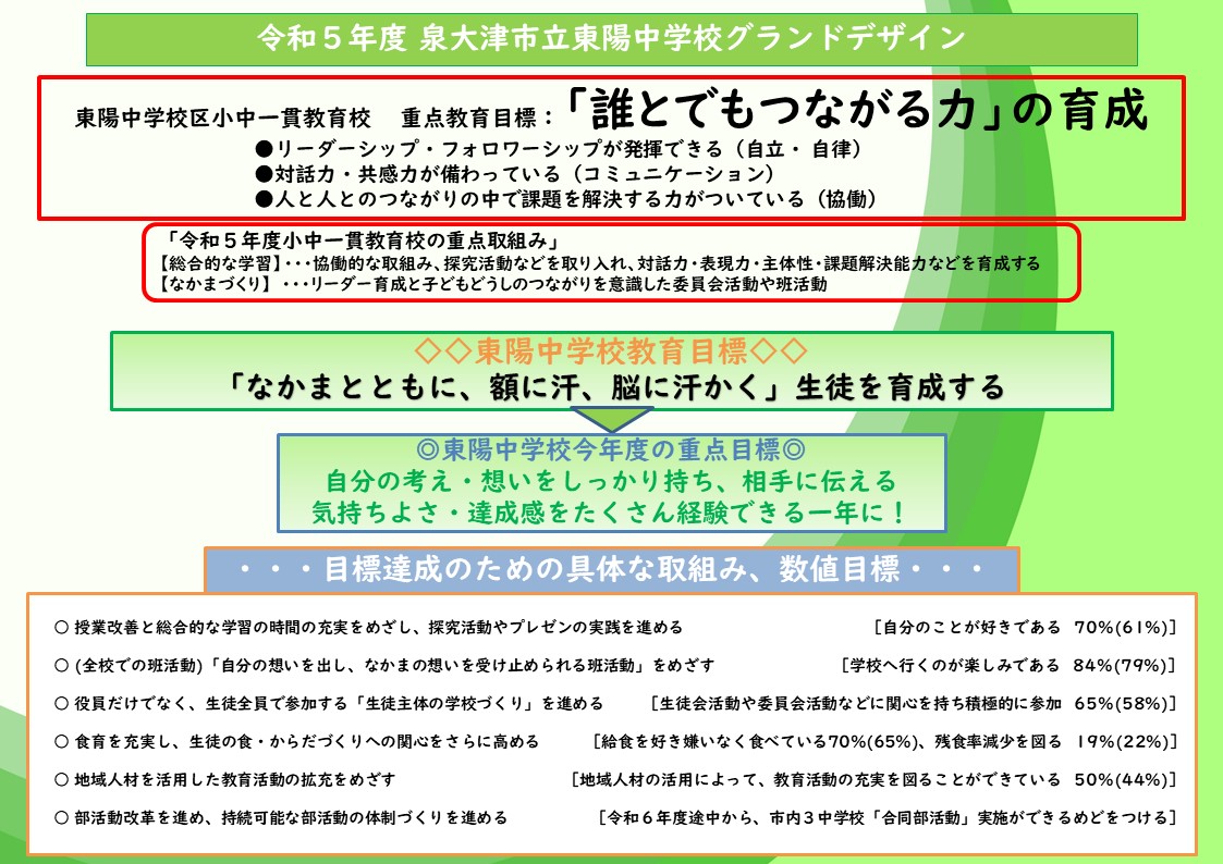 令和5年度 東陽中学校グランドデザインです。ご一読ください。