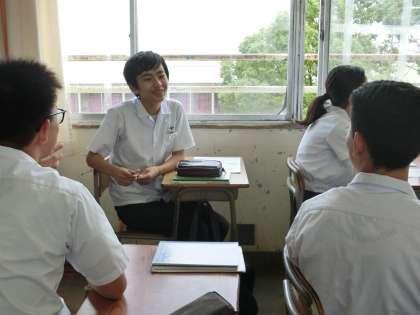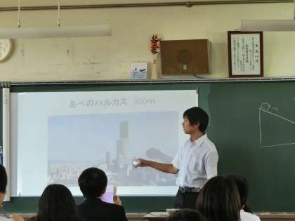 鉄球が高い建物から落下するのにどのくらいの時間がかかるか、周りの人と相談しながら予想しました。