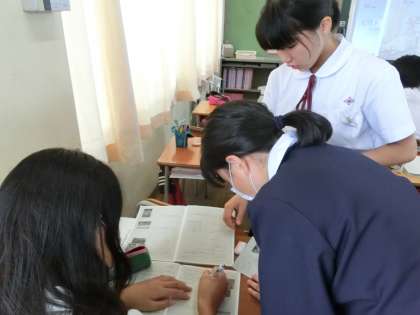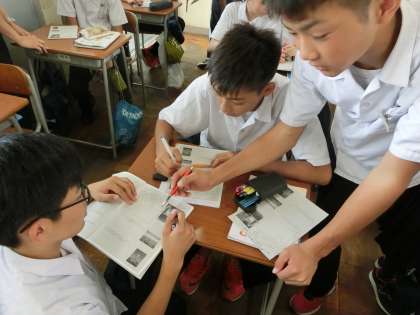 そして、相談タイム!数名で意見を出し合う、わからないから教えてもらう、ひたすら考える・・・思い思いのやり方で答えを導きました。