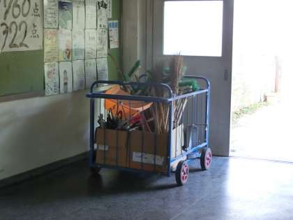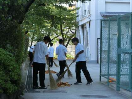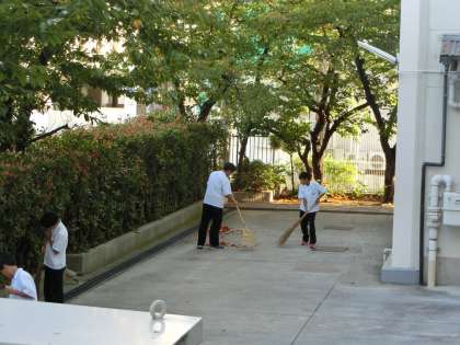 10月9日 サッカー部 朝の清掃活動を行いました。秋を迎え落ち葉がいっぱいです。