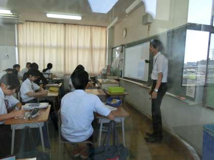10月9日 近隣市町の先生方を対象に数学の公開授業がありました。自分で一人で考える、周りの人に意見を求める、自由に相談するなど、様々な方法で答えを導きました。