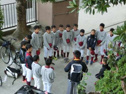 11月3日 野球部 休日の活動風景です。このあと公式戦に出場するため、近隣中学校へ出発しました。
