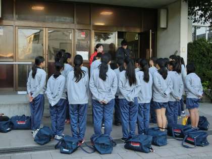 11月3日 女子バレーボール部 休日の活動風景です。短時間のミーティングのあと、公式戦に出場するため出発しました。