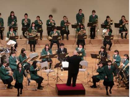 高等学校のホールは大きく立派で演奏が響き渡ります。
