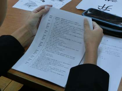 モニターで証拠品や現場地図を提示し、資料やワークシートを活用しながら模擬裁判はすすめられました。