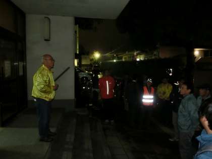 実行委員会後、「子どもを守る夜間パトロール」を行いました。浜校区、条南校区、旭校区の小学校区に分かれ、自転車や青パトロールカーで巡回しました。