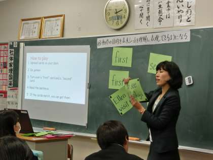 「動作の目的を表す言い方を理解し表現できる」を授業のめあてとし、アクティビティに取り組みました。