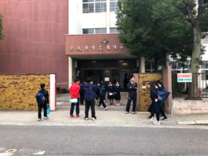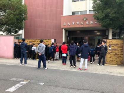 有志の生徒が朝のあいさつ運動をしていました。