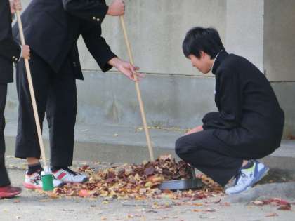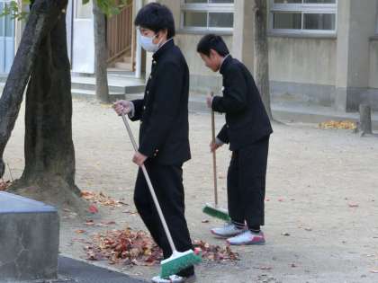 男子ソフトテニス部は、部活で時々使用する中庭の清掃を行いました。