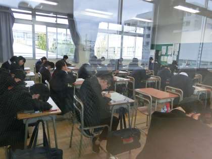 どのクラスも最後まで一生懸命解答していました。明日以降、返却されたら必ず振り返りを行いましょう。そして期末テストの準備を!