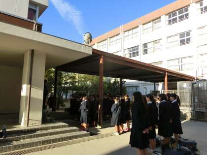 11月16日 すっきりピカピカ月間 朝の清掃・挨拶活動 今日は陸上部(長距離・短距離)と女子バレーボール部が担当しました。