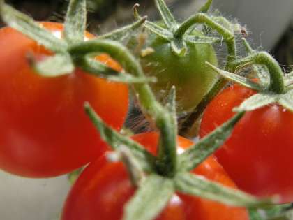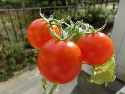 11月18日 技術科で栽培しているミニトマト、今年は大雨や台風で実りが難しかったのですが、ようやく赤く成長しました。