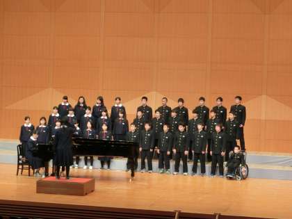 11月16日 アプラたかいし大ホールで行われた二市一町音楽会に東陽中学校を代表して参加しました。 東陽中学校2年2組「 君とみた海 」