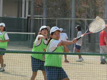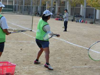 前衛 ボレー練習の様子です。今日は府立高の練習に参加するグループと学校で練習するグループに分かれて活動しました。