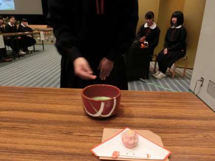 ほんのり甘い和菓子とほろ苦い抹茶がよく合います。