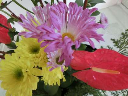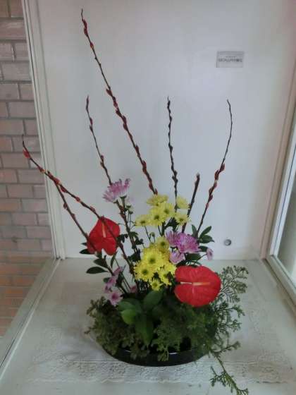 12月5日 昨日より玄関の生け花が新しいお花になっています。黄・赤・薄紫の主役が三つ、華やかなお花の組み合わせで、玄関はパッと明るい印象になっています。ご来校の際はどうぞご覧下さい。