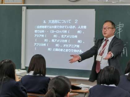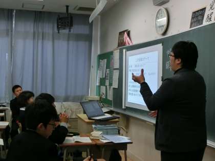 12月4日 6限 中高連携の取り組みの一つである、高等学校教員による出前授業がありました。今年度は、和泉総合高等学校、信太高等学校の先生に授業をしていただきました。
