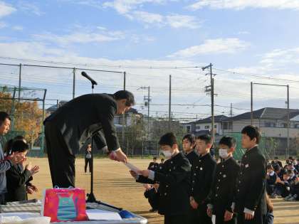 剣道部 大阪府新人大会 ベスト8入賞の表彰です。