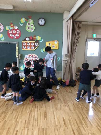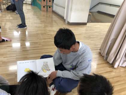 泉大津市外の幼稚園での様子です。絵本の読み聞かせをしたり、たくさんの園児とふれあったり・・・中学校生活で体験できないことをたくさんしました。