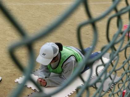 学校で練習するグループと外の施設で他校と練習するグループに分かれています。マットの上でストレッチに励む部員も・・・