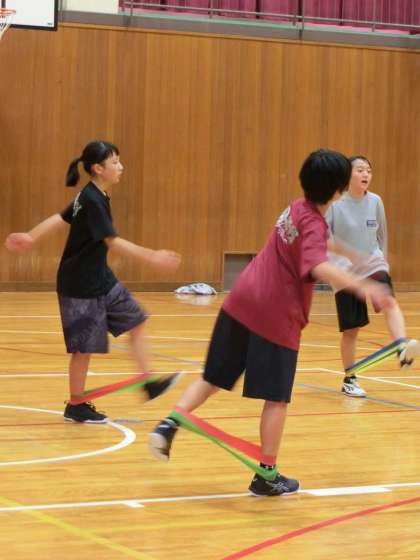 カラフルなゴムで簡単そう?いいえ足に負荷がかかる厳しいトレーニングです!