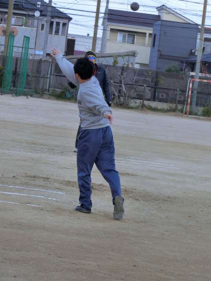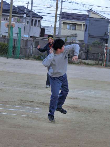 グラウンドの中央では砲丸投げの練習が行われていました。