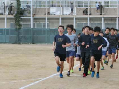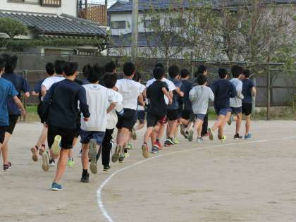 陸上部 長距離の練習風景です。ペース走は時間に気を配りながら走ります。