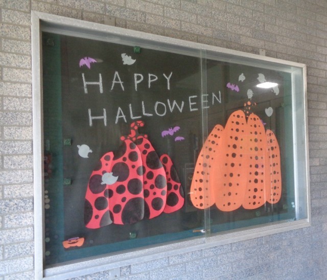 玄関横の掲示板に10月にぴったりの掲示物が飾られました。