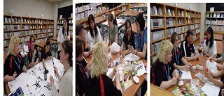 交流団の学生さんたちは、ALTの先生とともに「書道」と「折り紙」を体験をしました。