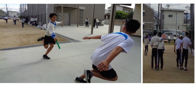 バトンパス練習をしている生徒たちからは体育大会への意気込みが伝わってきました。