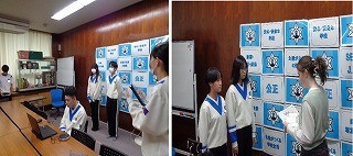 その後、クラブ等の表彰が行われました。英語スピーチ大会の表彰者はALTの先生から英文の表彰状を渡してもらいました。