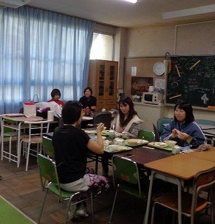 「毎月19日は食育の日」として、今日はトルコ料理のハブチュチョルバス・鶏肉のケバブの給食した。