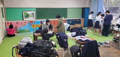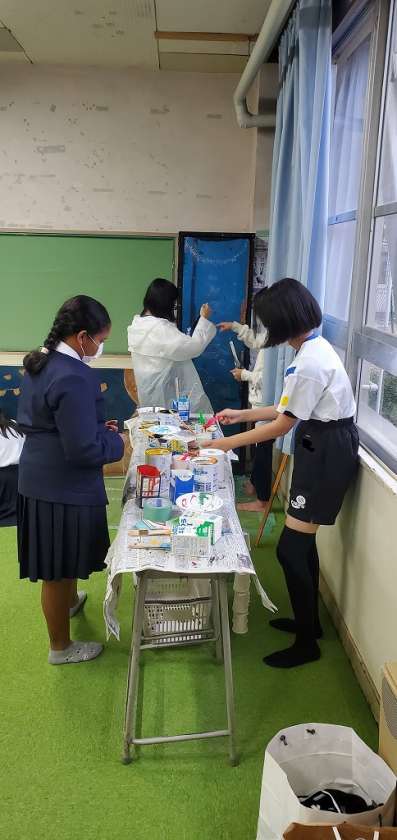 11月24日(木)本日も美術部が SEIFU CAFEの壁画作成に取り掛かってくれています。
