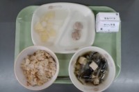 今日の給食は、玄米ごはん・小松菜のみそ汁・大豆とかえりのごまがらめ・厚揚げ豆腐の...