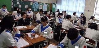 オーストラリア交流団の学生さんたちは各クラスで生徒たちと授業を受けています。美術...