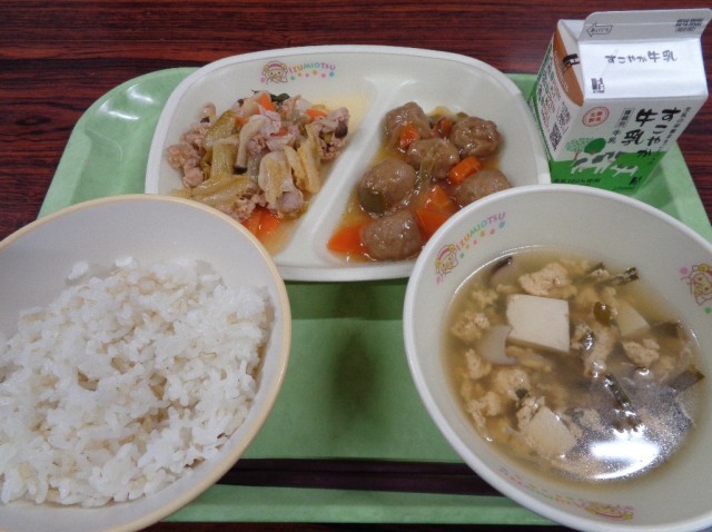 今日の給食は、ごはん・牛乳・春雨スープ・ルーローハン・きゅうりの中華和え でした...