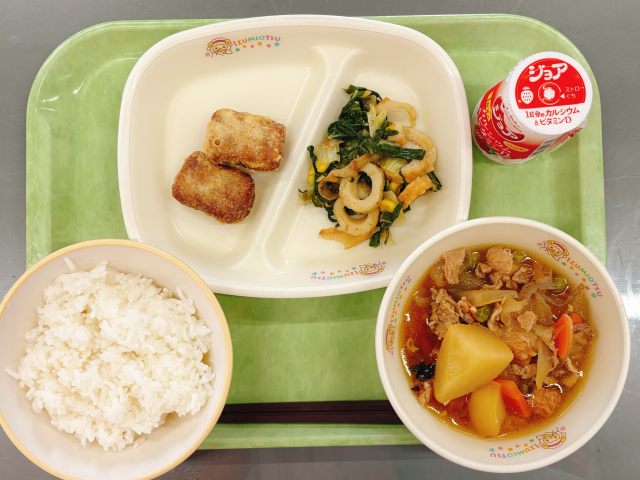 でも、関東では肉じゃがには豚肉を使うのが一般的なので、関東では今日の給食は「肉じゃが」ですね!!
