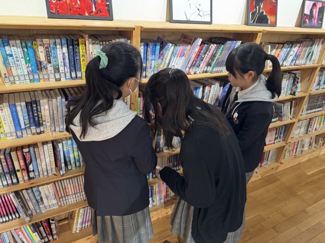 1年生の国語の授業では、読書活動の一環としてメディアセンターに行き、自分のオススメ本を探しました!!
