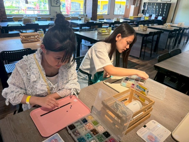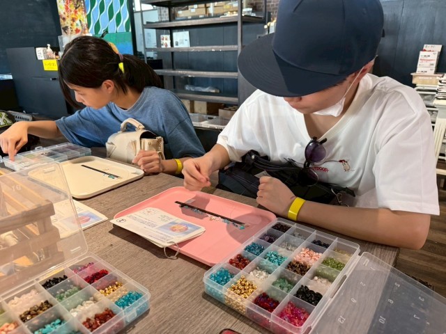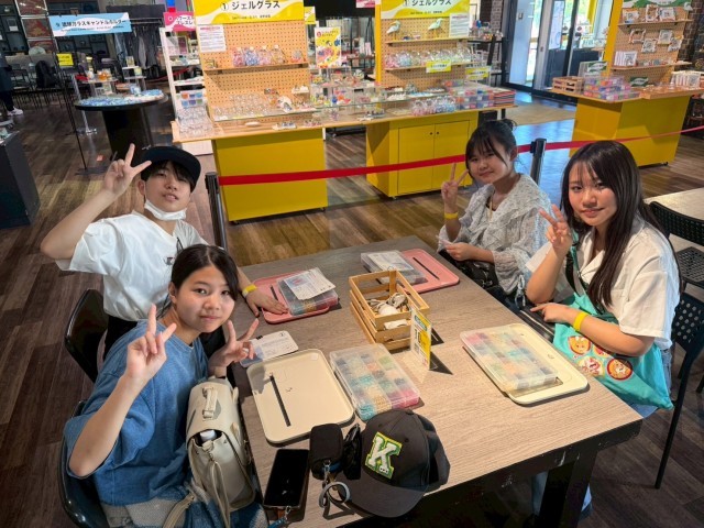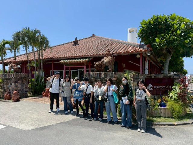 琉球ガラス村のコースでは、思い思いの作品を作っています。