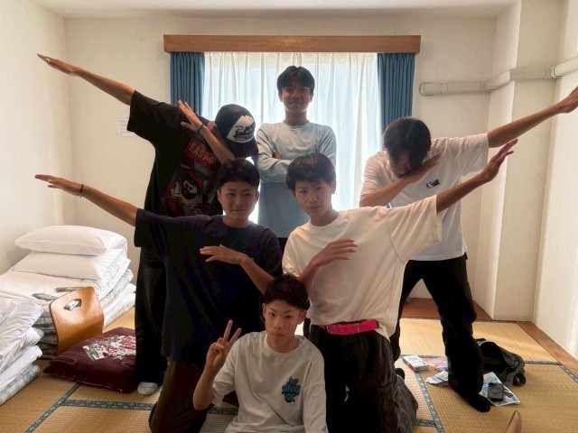 1日目の部屋にて集合写真。