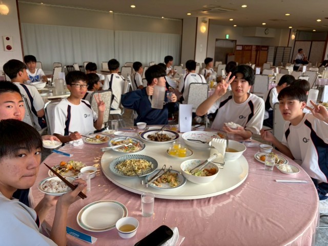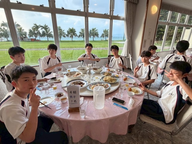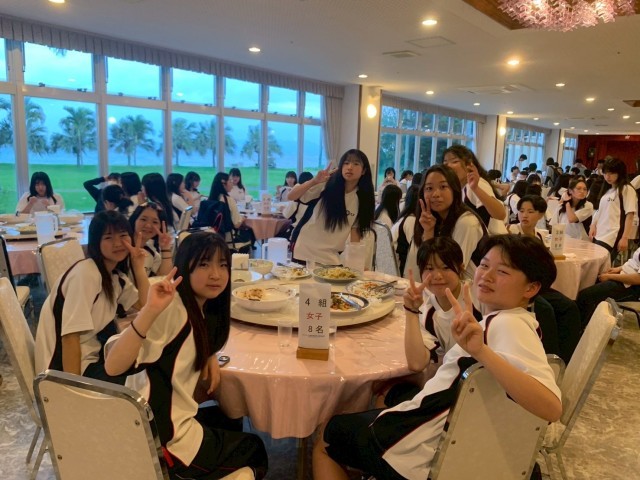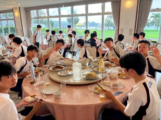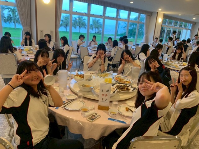 沖縄の郷土料理なども入った夕食の献立となっており、もりもりと食べていました。