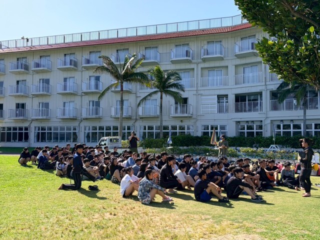 文化体験は、琉球村に行き、フォトフレーム作りやシーサーの絵付け体験、ブレスレット作りなどを行いました。