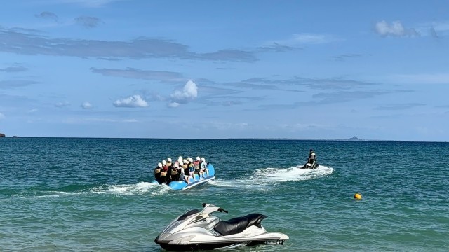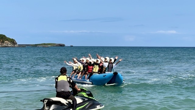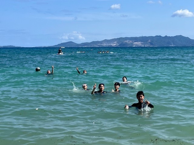 マリン体験では、バナナボートやビーチフラッグ、シュノーケリング、自由遊泳を暮らすことで順番に行いました。