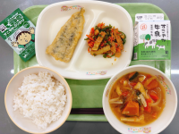 今回は、給食用にアレンジして、ビーフンを使ったスープにしました!!